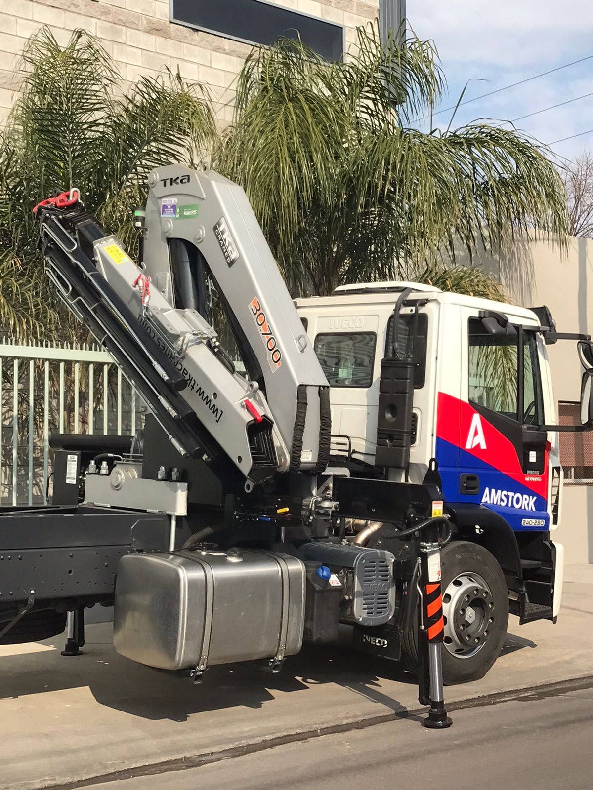 La elegida por la firma fue una Hidrogrúa TKA modelo 17.700 EX con patrón de cierre europeo y configuración 5H 3M, la cual fue instalada sobre un camión Iveco Tector 240-280.