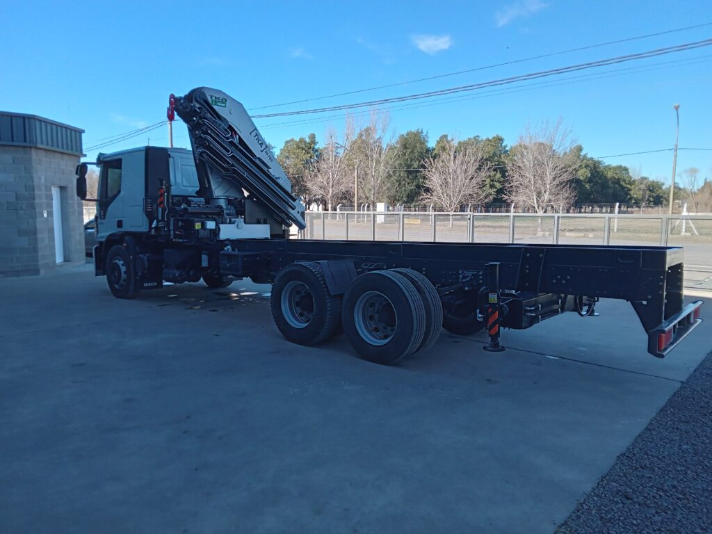 La hidrogrúa 36.700 con patrón de cierre canivete y configuración 6H 2M fue instalada en un camión Iveco Tector 240-280 en la planta industrial de Básculas Magris.