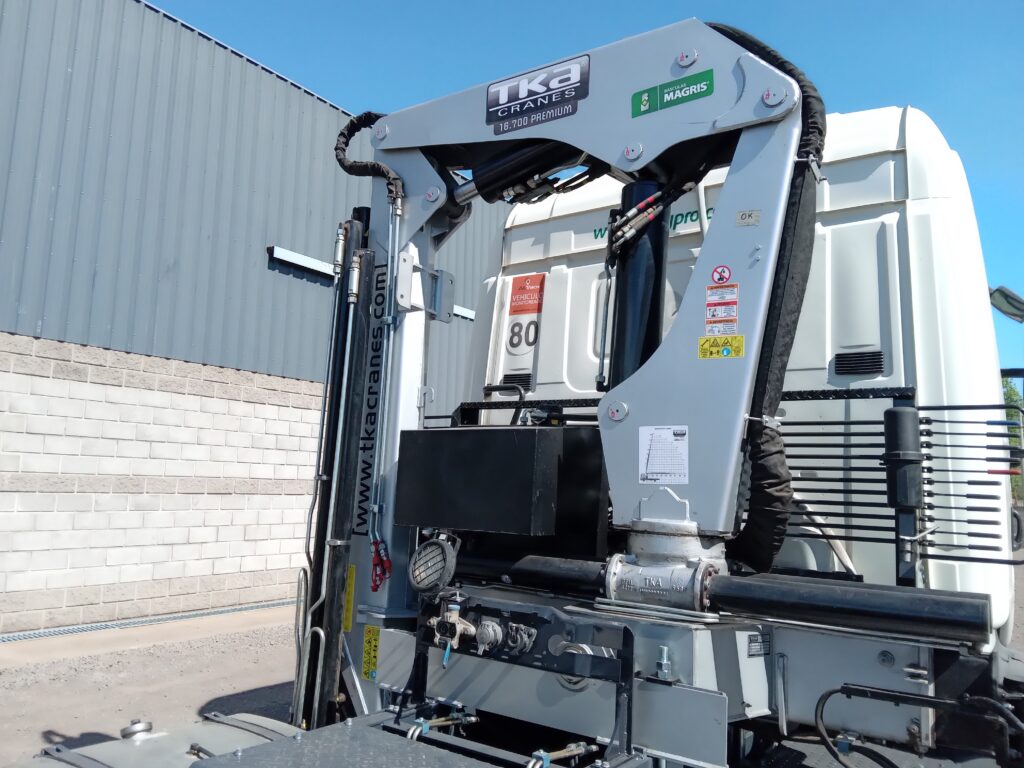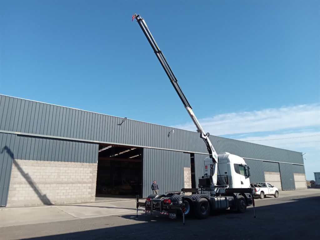 La hidrogrúa fue instalada sobre un camión Scania 380, al cual se le instaló también una Suspensión Neumática marca “Boero” como tercer eje que permite la escalabilidad del vehículo.