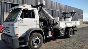 Al camión se le realizó Alargue de Chasis y Colocación de carrocería y la Hidrogrua fue entregada con Horquilla Porta Poste, Descanso de Hidrogrua y Barquilla Doble.