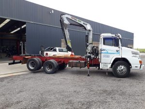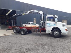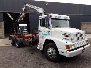 Venta y Montaje de Hidrogrua TKA 12700 Canivete 3H 0M en Camión MB L1215/48 (6×2) Cabina Simple.