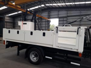 El trabajo incluyó la colocación de una carrocería con cajoneras metálicas y una barquilla doble de fibra de vidrio.