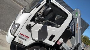 Montaje de Hidrogrua TKA 8.700 en formato Canivete configuración 3H 0M en camión marca Agrale 10.000