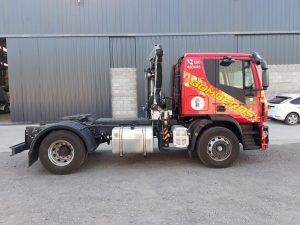 Montaje de Hidrogrua TKA 8700 Trave 3H 1M en Camión IVECO 170E28 TRACTOR (4×2) con Cabina Dormitorio.