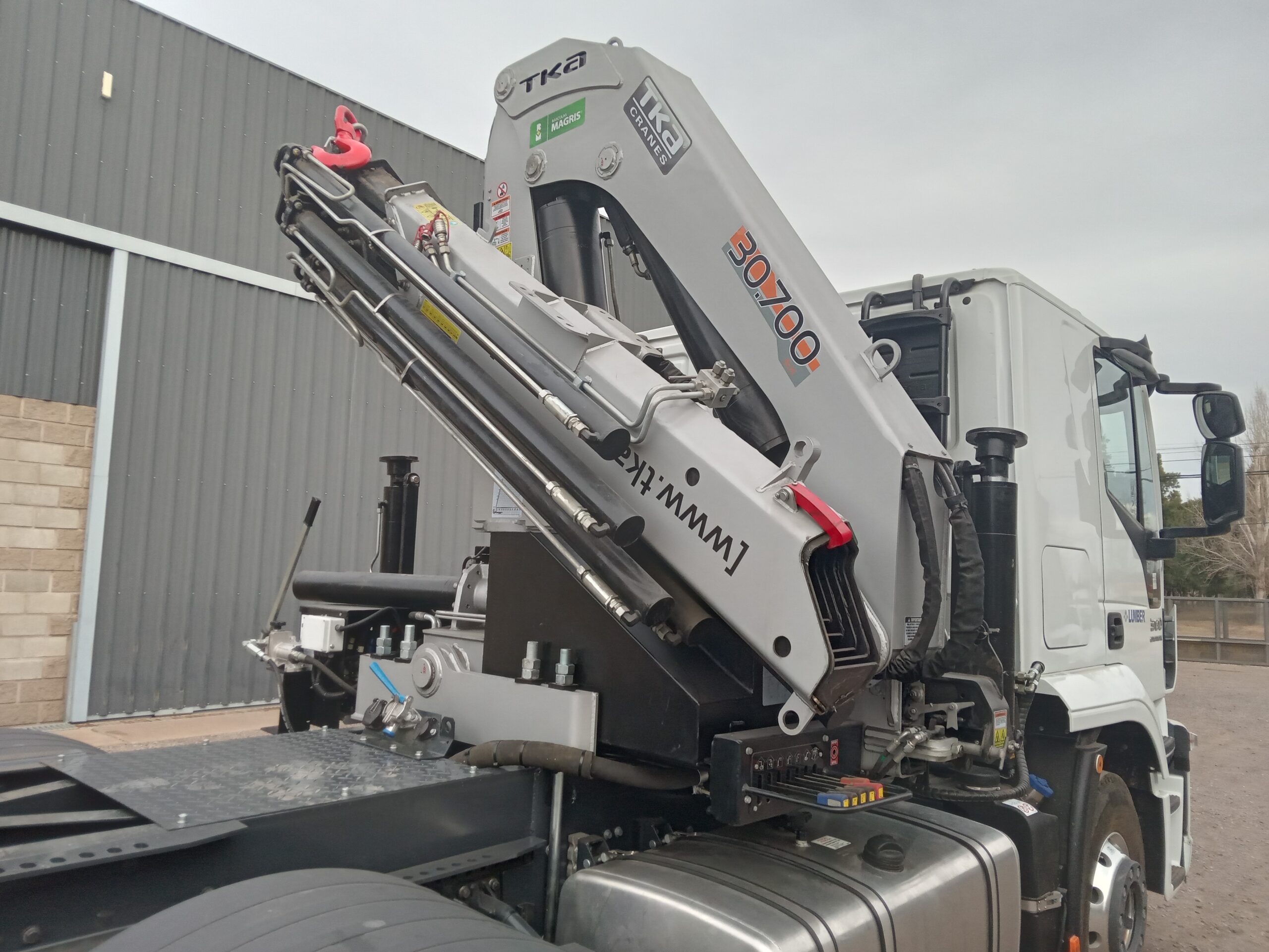 Lumber ya posee equipos TKA y decidió incorporar ahora un modelo 30.700 C bajo configuración 5H 3M Full con Preparación Hidráulica Adicional para Hoyadora, Limitador de Carga y Parada de Emergencia con indicador lumínico.