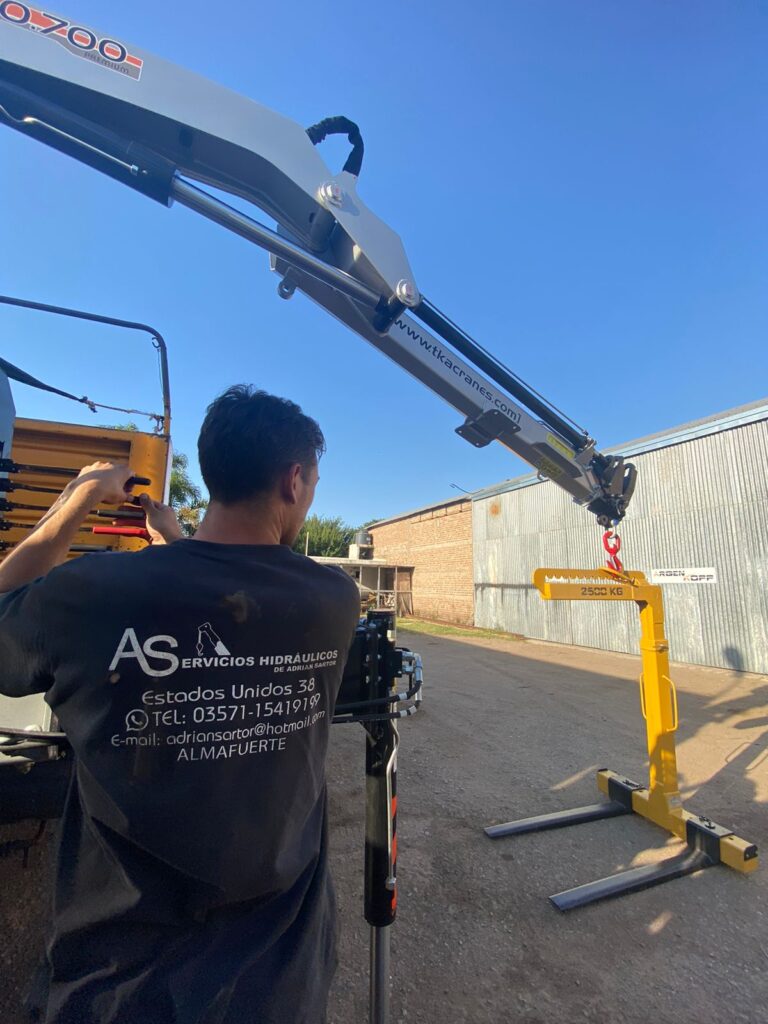 El montaje, prueba de carga y puesta en marcha de la hidrogrúa corrió por cuenta de Adrián Sartor. A su vez, el equipo fue complementado con una Horquilla Portapallet y un Soporte en cruz para elevar bolsones.