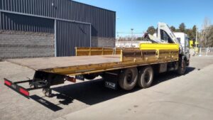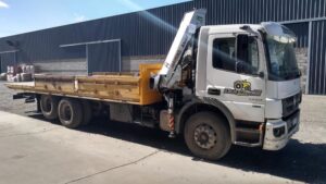 Montaje, testeo y puesta en marcha de Hidrogrúa TKA modelo 14.700 Premium en formato Canivete y configuración 3H 0M en camión Mercedes Benz Atego 1720 con camilla.