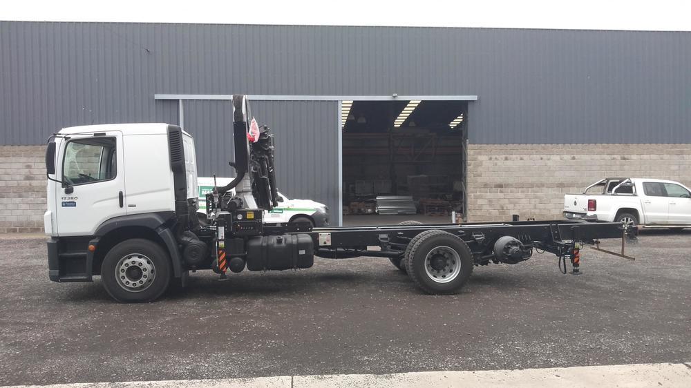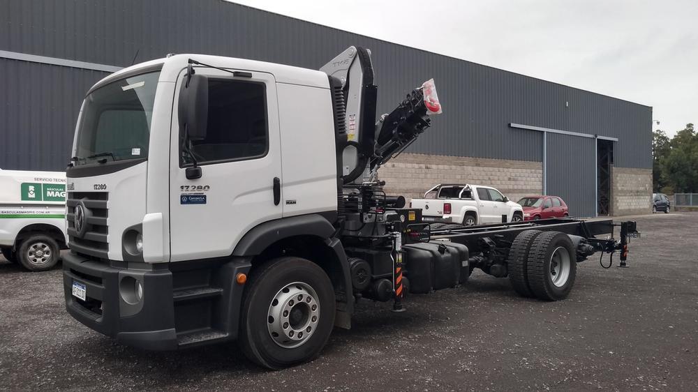 Instalación, Puesta en marcha y Prueba de carga de Hidrogrúa TKA modelo 18.700 EX con patrón de cierre Europeo y configuración 5H 0M sobre camión Volkswagen 17.280 AdvanTech.