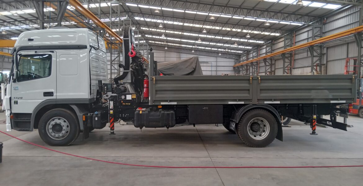 Instalación de Hidrogrúa TKA con patrón de cierre europeo y configuración 3H 2M sobre camión Mercedes Benz Atego 1729.