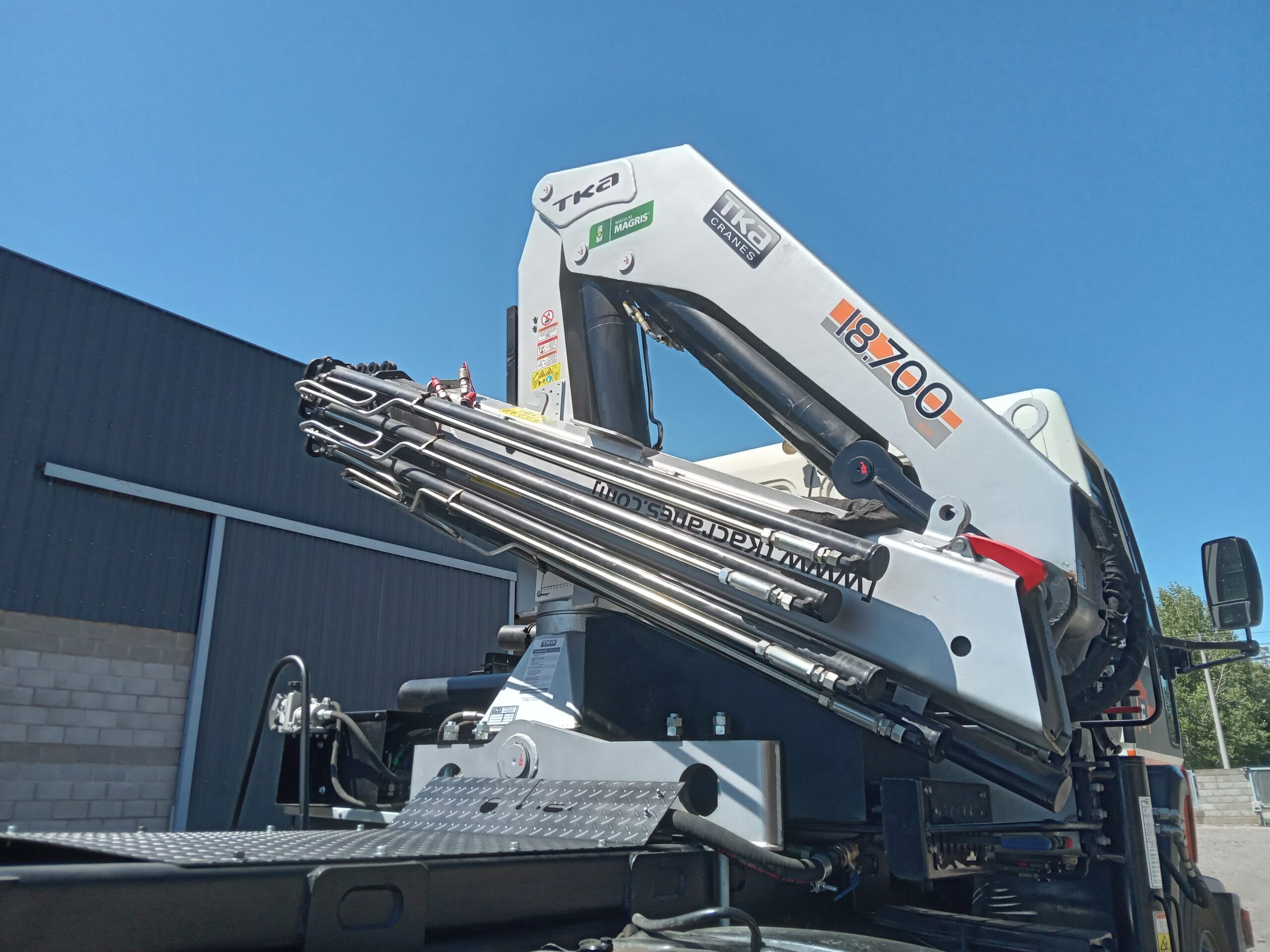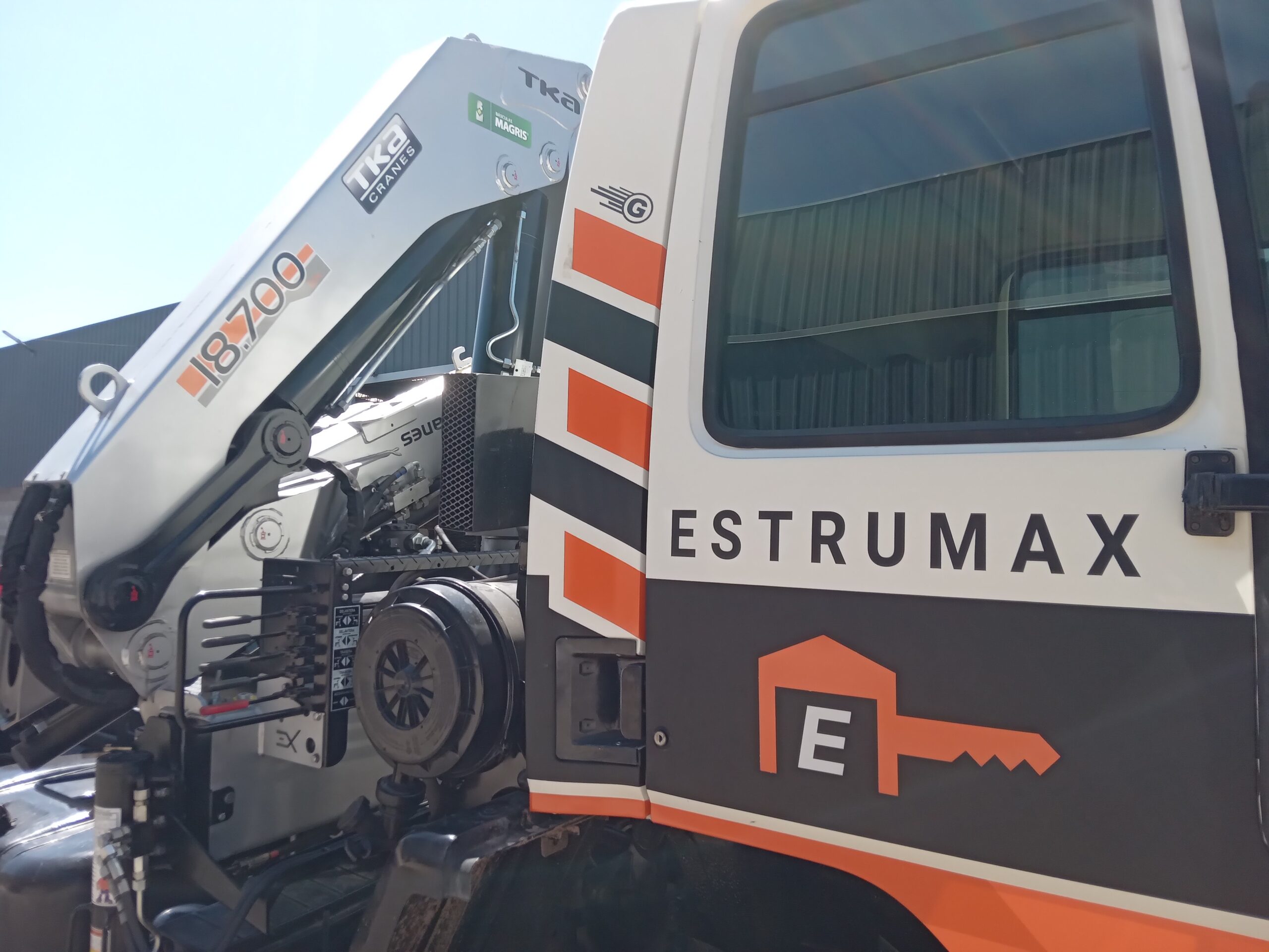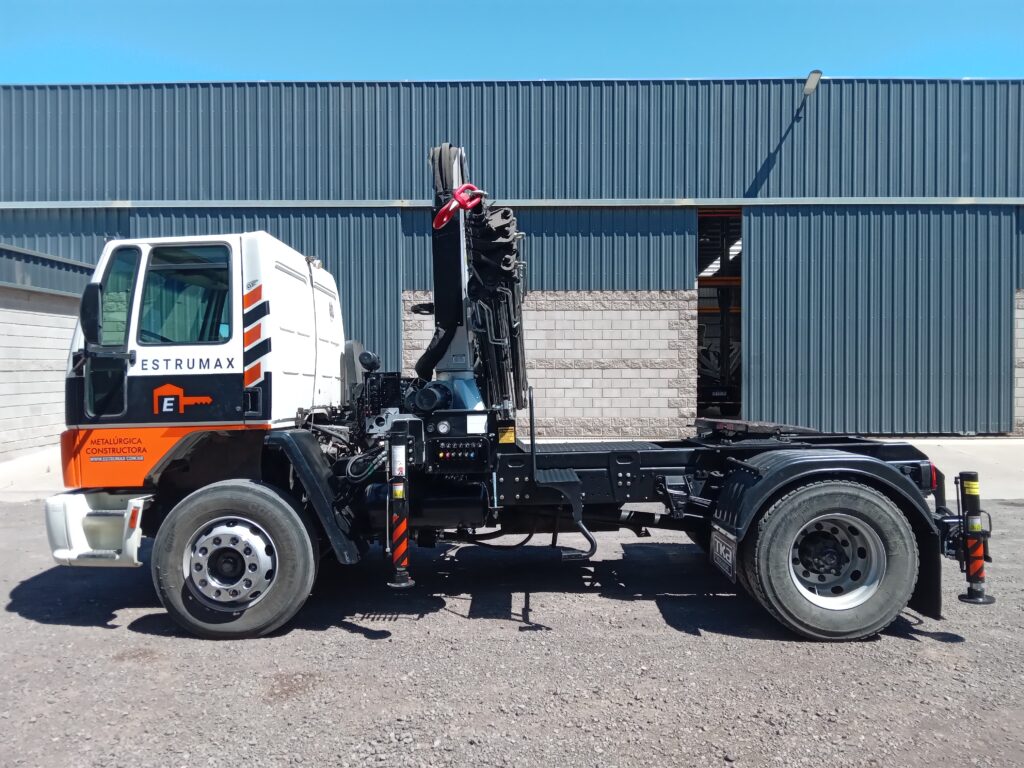 Instalación de Hidrogrúa TKA modelo 18.700 EX con patrón de cierre europeo y configuración 5H 2M sobre camión Ford Cargo 1722E.