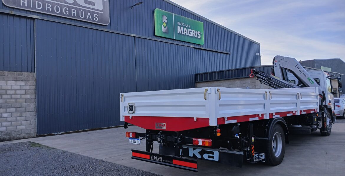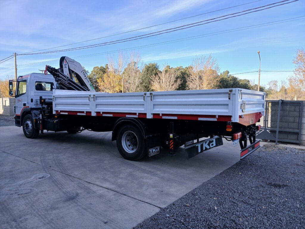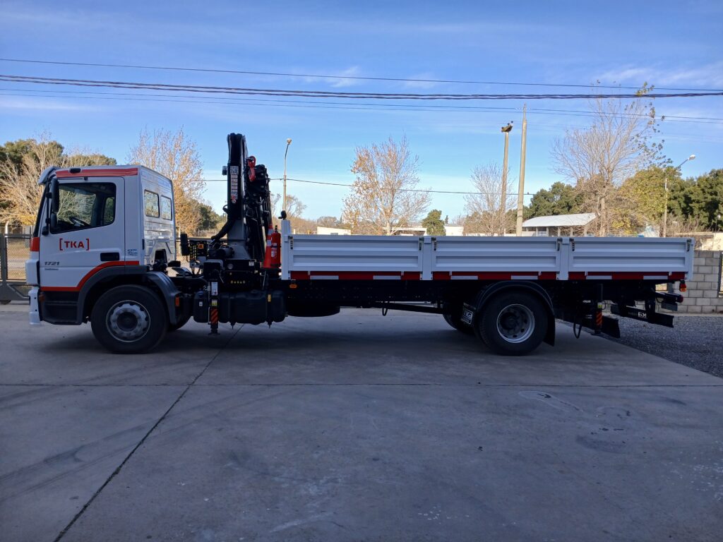 Instalación, puesta en marcha y prueba de carga y elevación de Hidrogrúa TKA modelo 18.900 en formato canivete y configuración 5H 2M Full con Control Remoto Inalámbrico sobre camión Mercedes Benz 1721.