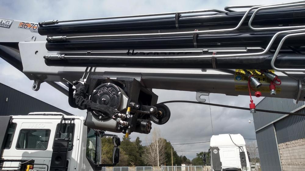 La hidrogrúa posee Preparación Hidráulica para Cabrestante y Hoyadora, Limitador de carga, Parada de emergencia, Cabrestante Hidráulico de 3 Tn con Poleas Multiplicadoras.