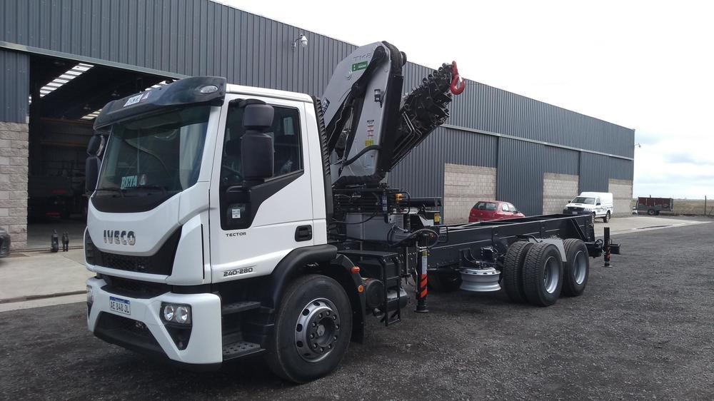 Instalación, puesta en marcha y prueba de carga de Hidrogrúa TKA modelo 36.700 Premium con patrón de cierre Europeo y configuración 6H 2M sobre camión Iveco Tector 240-280 (6×2).