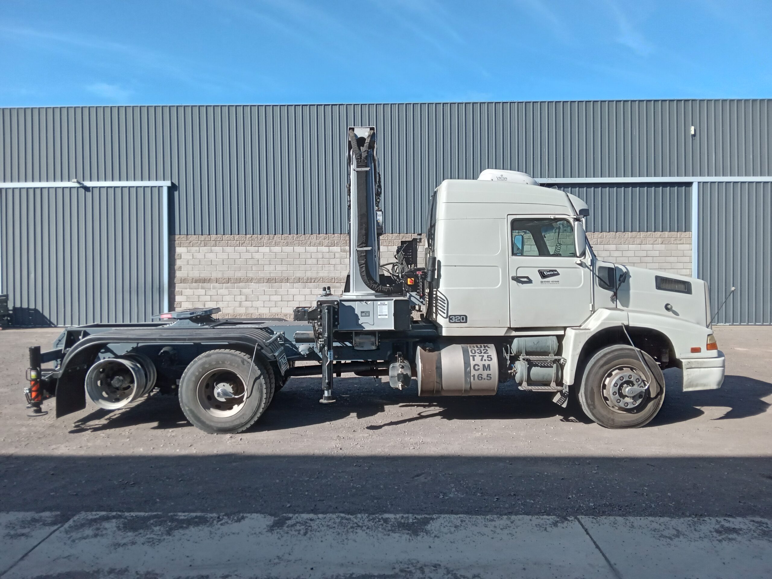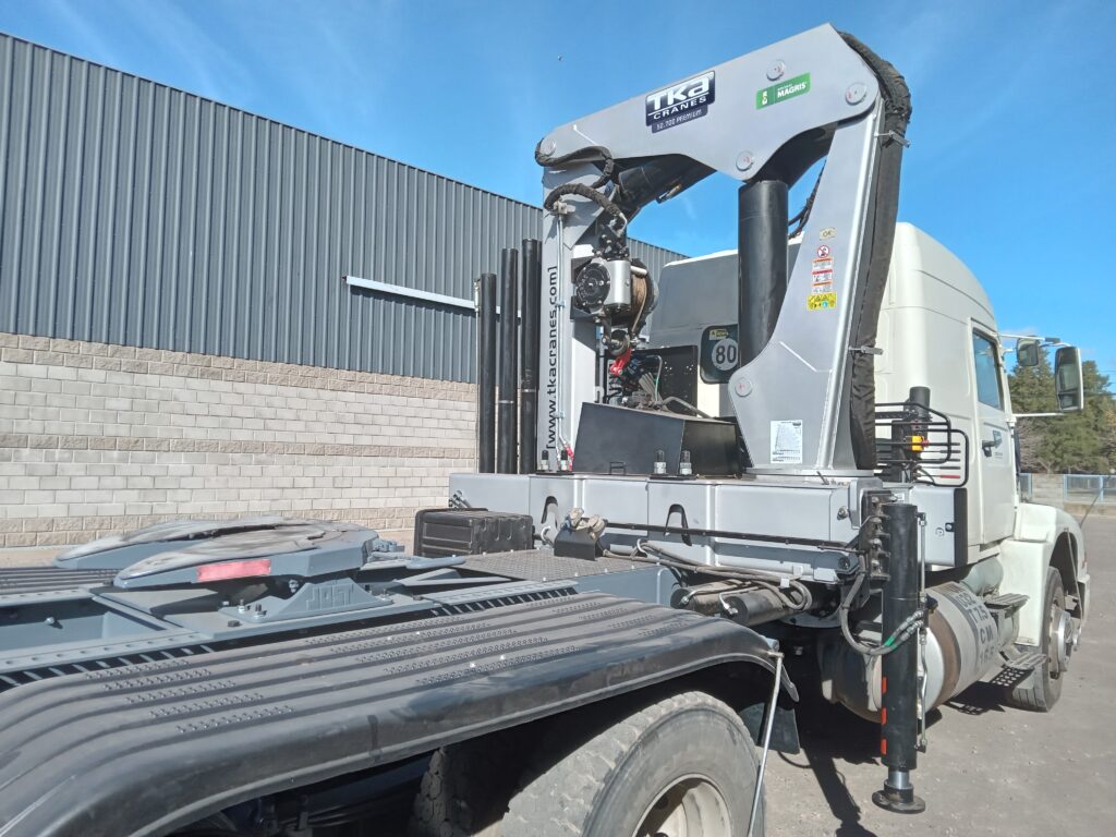 Instalación, prueba de carga y puesta en marcha de Hidrogrúa TKA modelo 52.700 con patrón de cierre americano (Trave) y configuración 6H 2M sobre camión Volvo 320 NL10 Electronic.