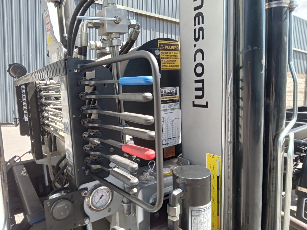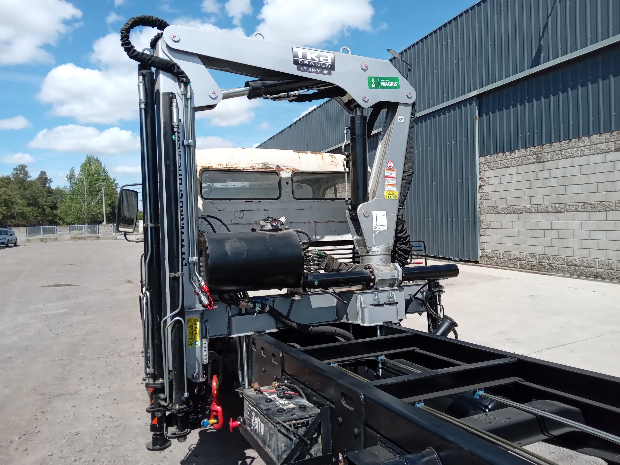 Instalada en los talleres de Básculas Magris sobre un camión Mercedes Benz 314, la TKA 8.700 cuenta con una Preparación Hidráulica Adicional para Hoyadora.